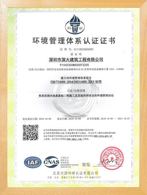 深圳市深大建筑工程有限公司,成立于2017年,注冊資本5000萬,總部位于深圳市寶安區中心地段。公司擁有地基基礎工程專業承包壹級資質,市政公用工程施工總承包二級資質,是一家一體化現代型企業。公司重視企業內部管理與發展,嚴格實施ISO管理體系,率先通過了ISO9001質量管理體系認證、環境管理體系及、職業健康安全管理體系的認證。為公司的長遠發展奠定了穩健基礎。
